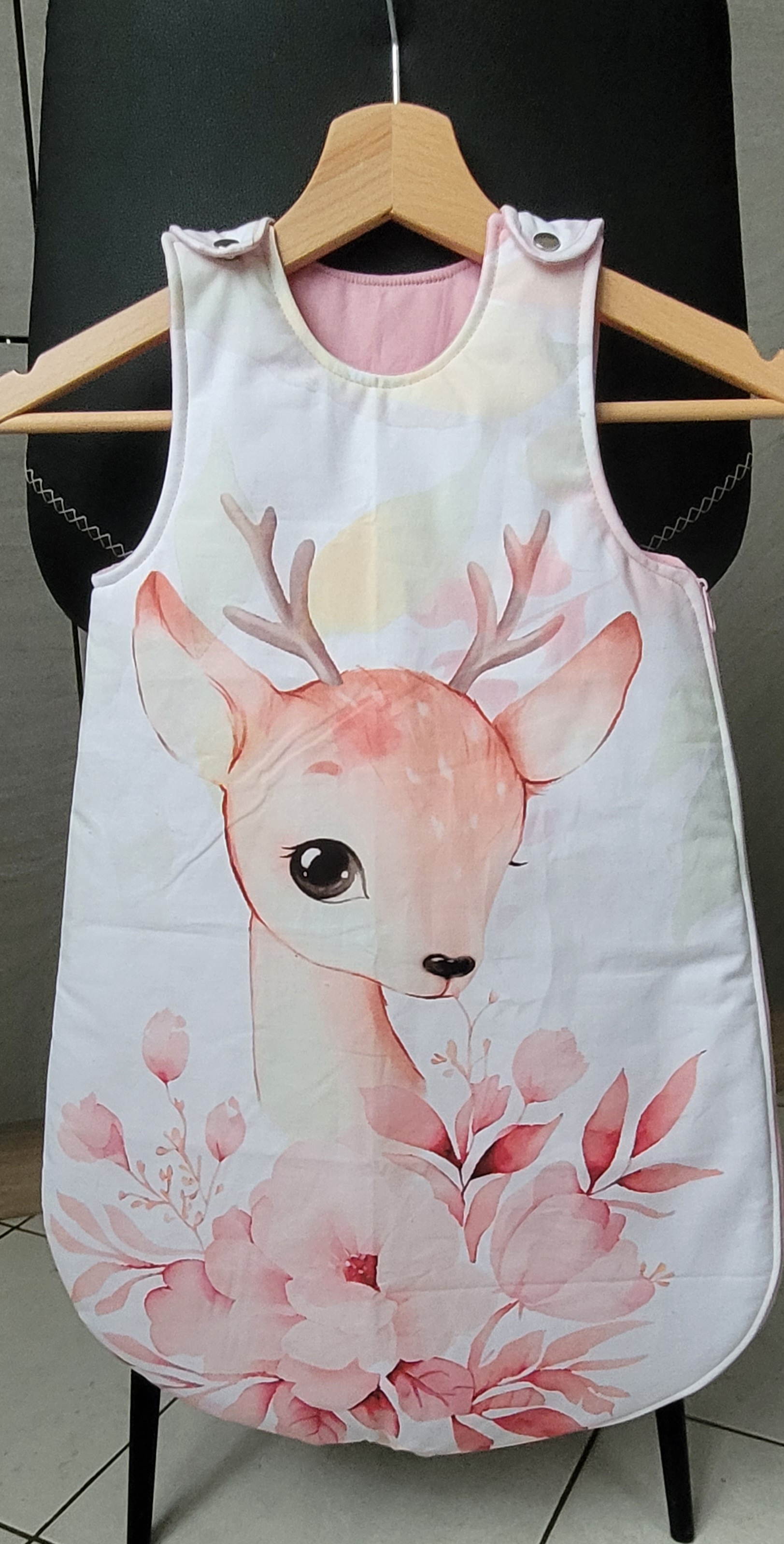 Gigoteuse "Biche colorée" 29,50 € Ce tissu est 100% coton, certifié Oeko-Tex.70cm x 45cmLavage maximum 30°, NE PAS JAVELLISER
