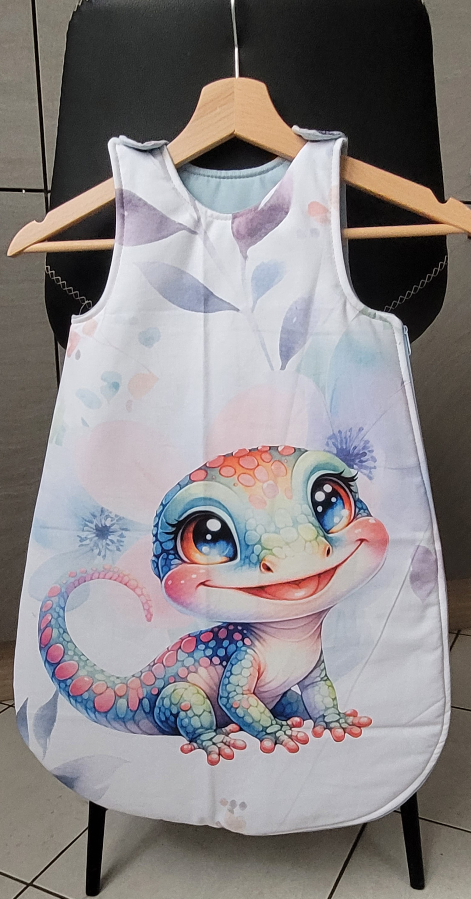 Gigoteuse "Gecko" 29,50 € Ce tissu est 100% coton, certifié Oeko-Tex.70cm x 45cmLavage maximum 30°, NE PAS JAVELLISER