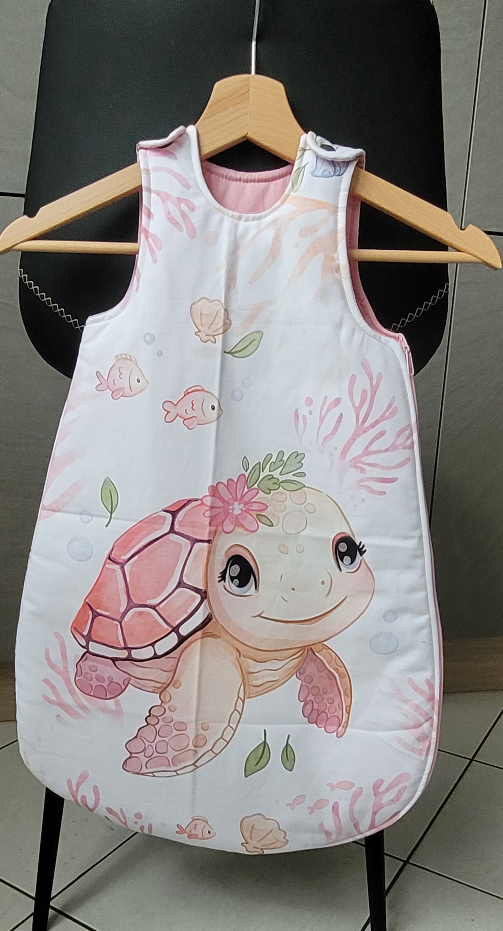 Gigoteuse "Tortue Rose" 29,50 € Ce tissu est 100% coton, certifié Oeko-Tex.70cm x 45cmLavage maximum 30°, NE PAS JAVELLISER