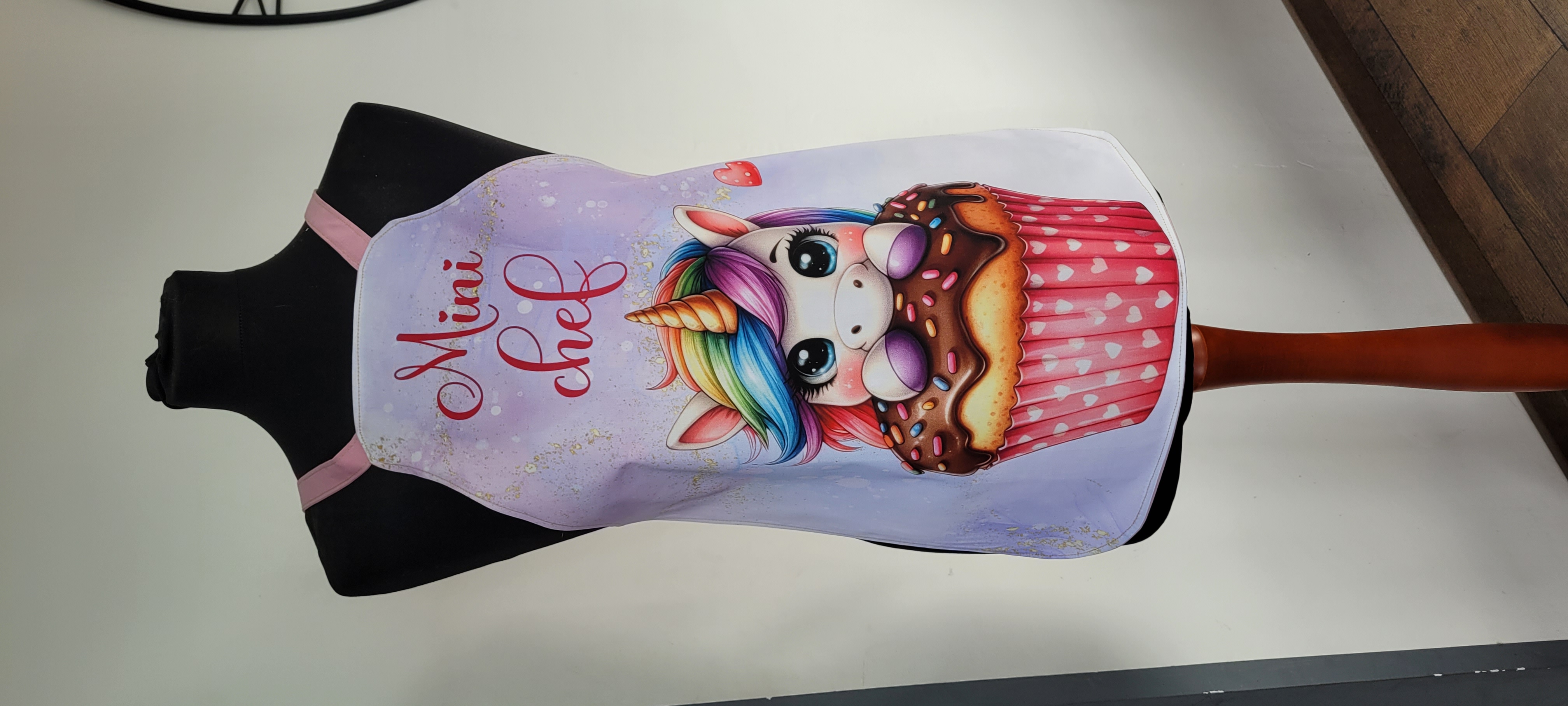 Tablier "Licorne Brownies" 25,00 € Tissu en satin de coton et coton 100%, certifié Oeko-Tex.Tablier pour enfants jusqu'à 8/9 ans,