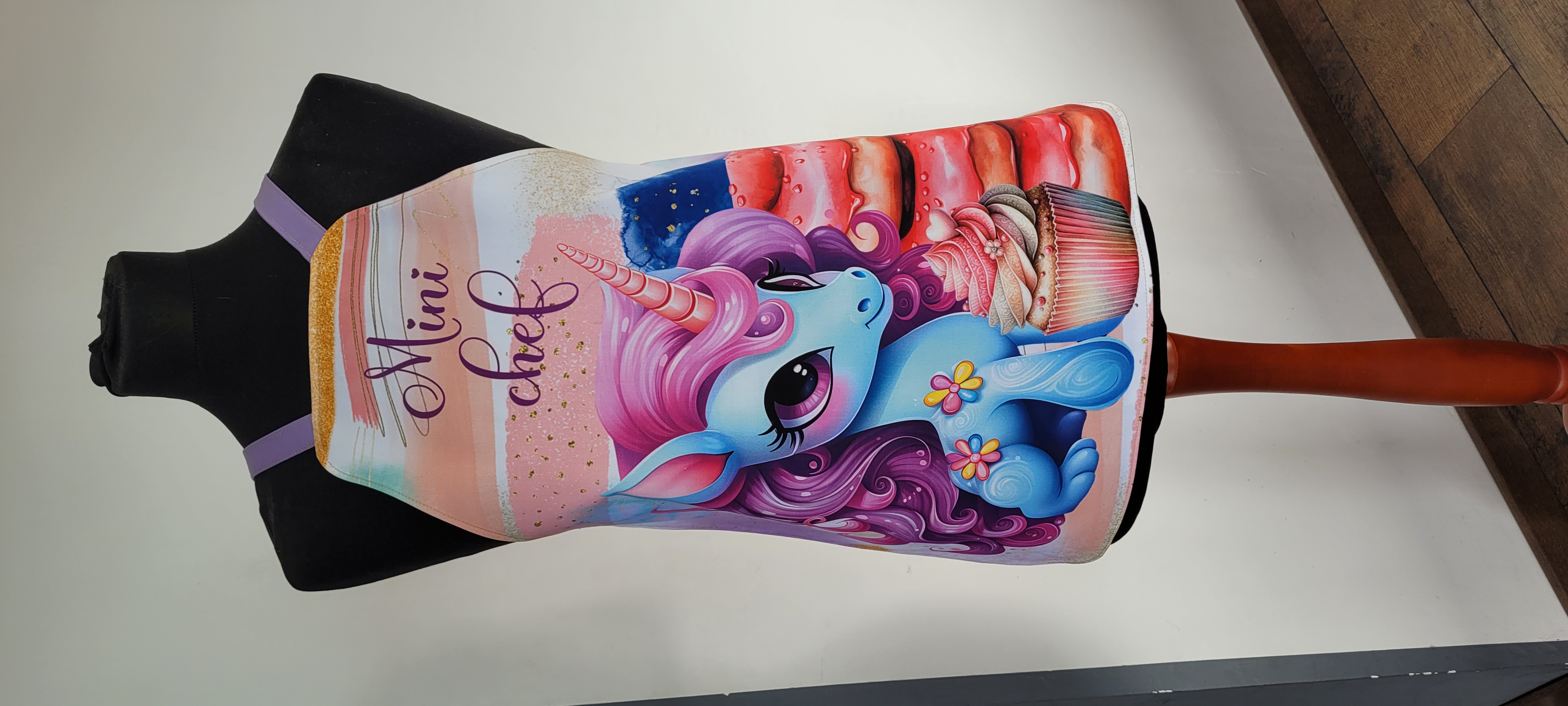 Tablier "Macaron" 25,00 € Tissu en satin de coton et coton 100%, certifié Oeko-Tex.Tablier pour enfants jusqu'à 8/9 ans,
